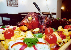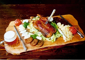 sirloin in cream, roast pork with dumplings and cabbage, crepes filled with