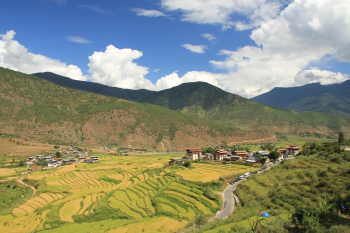 Po snídani v hotelu se vydáte na 3 hodinovou cestu do Wangdue, po cestě překročíte průsmyk Dochula (3140 m), odkud se vám naskytne panoramatický výhled na Himaláje. Prohlédnete si Druk Wangyel Chorten – 108 stup postavených královnou Ashi Dorji Wangmo Wangchuck. Pod průsmykem navštívíte botanickou zahradu plnou rododendronů. V Punacce uvidíte pevnost Punakha Dzong, která leží na ostrohu nad řekami Po Čhu a Mo Čhu a kde v zimních měsících žijí stovky mnichů. Odpoledne se vydáte na hodinovou procházku malebnými rýžovými poli přes vesničku Pana do chrámu Chimi Lhakhang, jež je zasvěcený lámovi Drupka Kuenleymu, který zde působil koncem 15. století. Proslul tím, že výklad svého učení doprovázel nejen zpěvem a různými vtipy, ale i názorně předváděl celé pasáže, čímž si vysloužil přezdívku Divine Madman (Božský blázen). V současnosti chrám slouží jako místo zasvěcené plodnosti, kde se každodenně modlí mnoho párů toužících po dětech. Nocleh ve Wangdue.