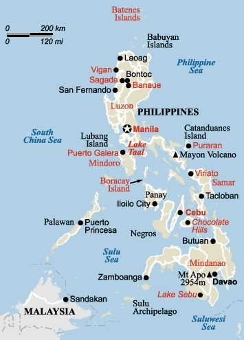 Filipíny leží v jihovýchodní Asii a jsou tvořeny 7107 ostrovy. Vzrušující vodopády, nádherné dlouhé písčité pláže, starodávné rýžové terasy, kopce připomínající tvarem čokoládové pralinky, vzácná a exotická fauna a flora, útesy oplývající mořským životem, skvělá golfová hřiště a tropický životní styl plný zábavy – to vše najdete na Filipínách v hojné míře. Nachází se zde i ostrov Boracay, jehož čtyři kilometry dlouhá White Beach (Bílá pláž) je považovaná za „nejlepší pláž na světě“. Největší „poklady“ Filipín jsou však vyhrazeny těm, kdo se vydají mimo hlavní cesty. Pouze pěší turistikou se dostanete do míst, kde křišťálové vody řek padají do závratných hlubin a vyvářejí tak úchvatné vodopády a kde tetovaní domorodci žijí stejně jako před staletími. Spatříte útesy tyčící se nad zpěněnými příbojovými vlnami, panenské lesy, čisté řeky, vlhkou džungli a vznešené hřebeny hor. Zřídkakdy však budete mít příležitost kochat se těmito krásami o samotě. Samota je něco, co Filipínci téměř neznají. Jejich přirozeností je společenské chování a samotáře považují za veliké podivíny. Zdejší obyvatelé jsou velmi vstřícní a přátelští a všude se bez problémů domluvíte anglicky. „Bayanihan“ je termín, kterým Filipínci vyjadřují pocit sounáležitosti, jenž je spojuje v časech dobrých i zlých a vztahují jej i na cizince, kteří navštíví jejich zemi. Málokde potkáte lidi, kteří jsou tak dobře naladěni a připraveni se smát, žertovat a chovat se přátelsky k cizincům. Pokud si myslíte, že nejdůležitější zkušeností z cestování je poznávat nové lidi a ne pouze navštěvovat chrámy a muzea, pak jsou Filipíny pro vás tou správnou zemí.